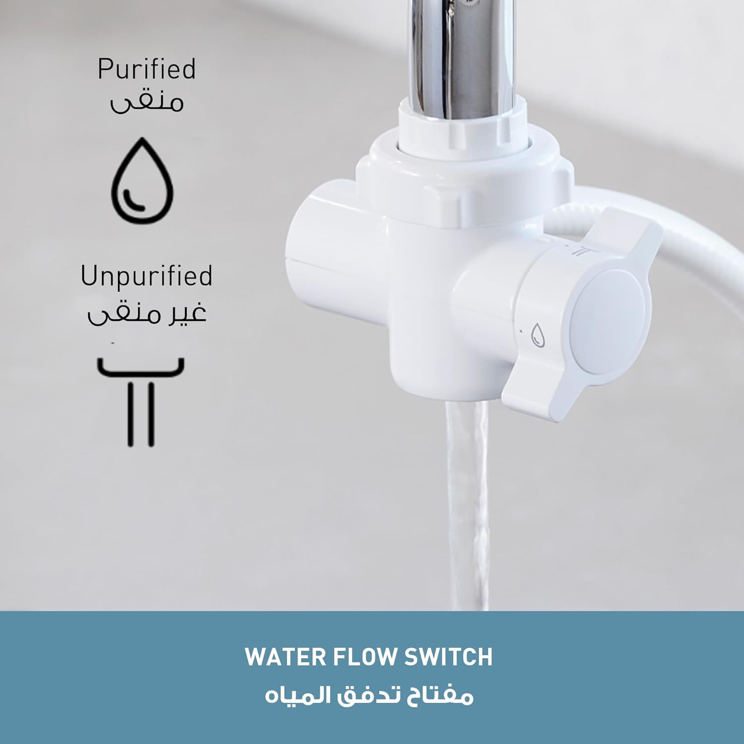 تتيح الرافعة سهولة التبديل بين الماء المنقى والماء غير المنقى بعملية بسيطة.