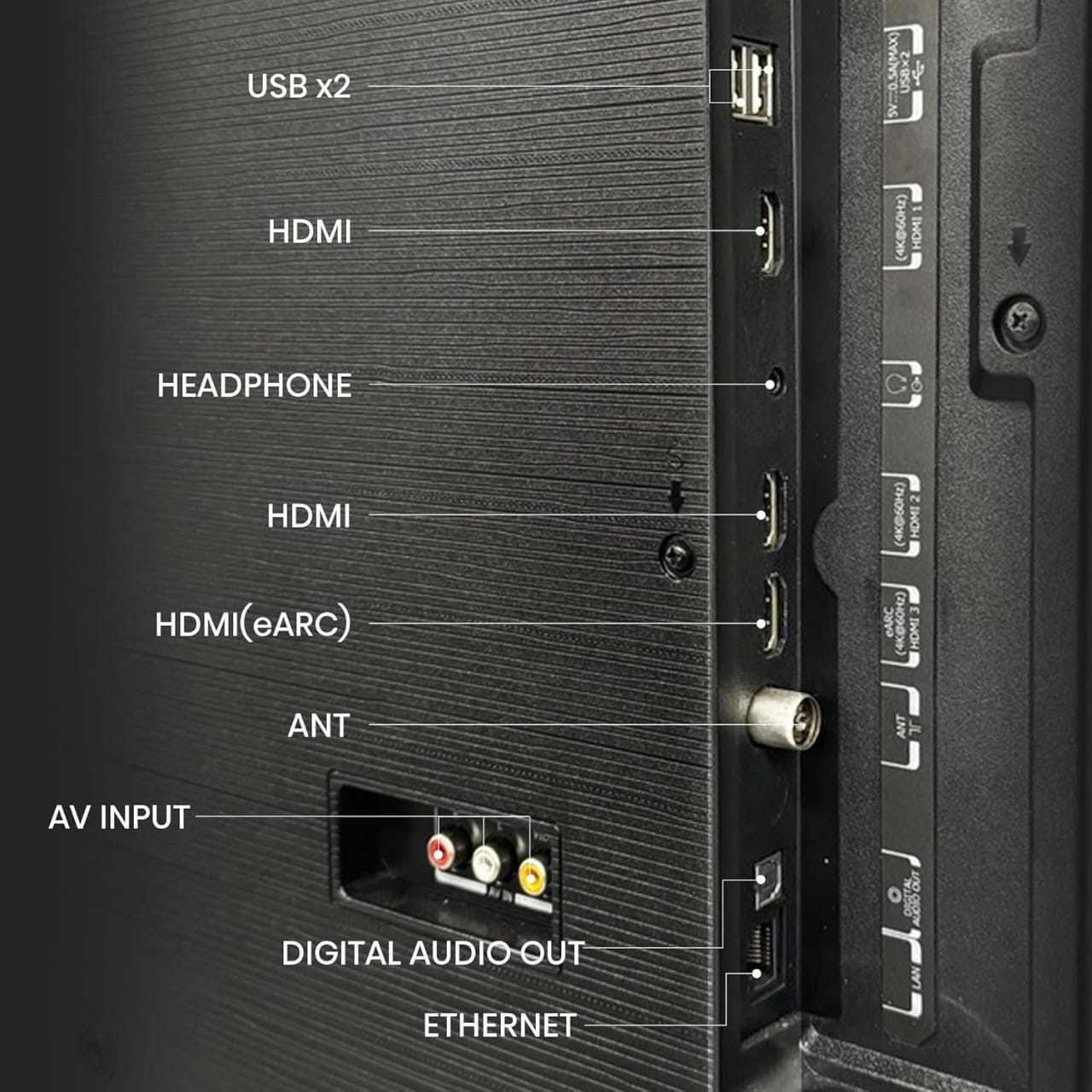 خيارات اتصال متعددة: منافذ HDMI متعددة (3 منافذ)، ومنافذ USB (منفذان)، وبلوتوث، وواي فاي، وإيثرنت، مما يوفر خيارات واسعة لأجهزة الألعاب المنزلية، وأجهزة البث، ومكبرات الصوت، ومحركات الأقراص الخارجية، وغيرها.