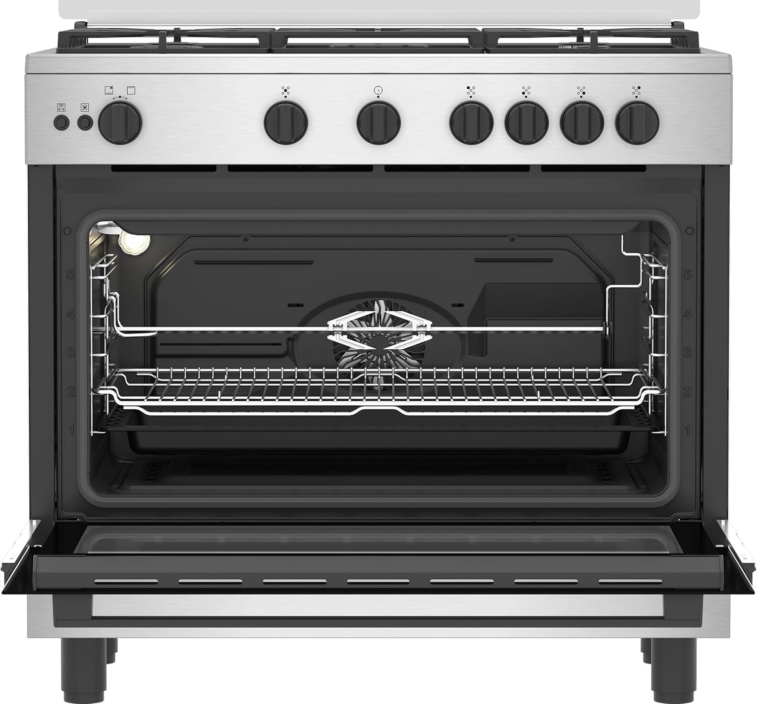 بوتاجاز 5 شعلة – امان كامل – إستانلس 90 سم -مروحتين تبريد وطهى-حوامل حديد