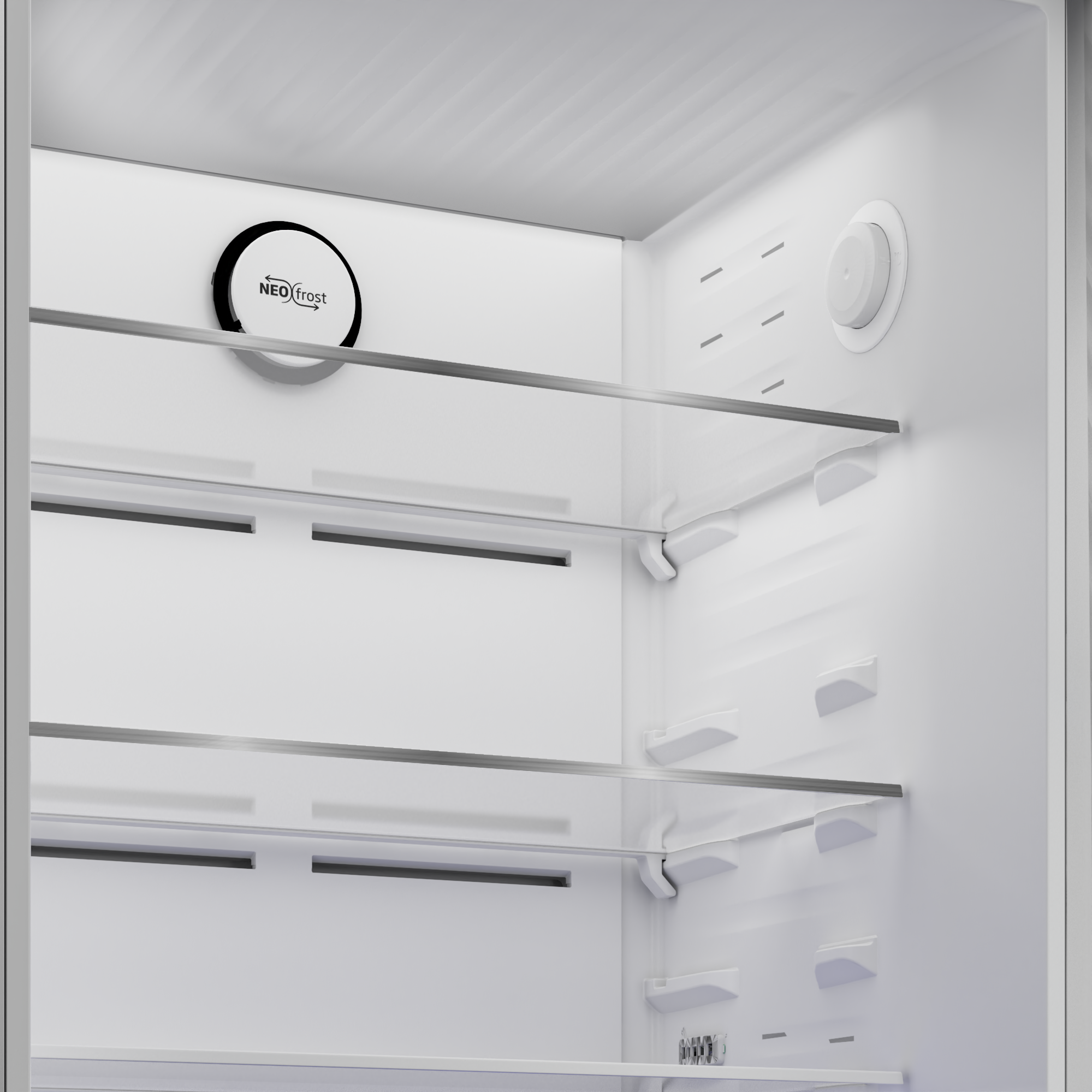 4. خاصية منع الثلج (No Frost) لا مزيد من إذابة الثلج يدوياً. نظام النوفروست يمنع تكون الجليد نهائياً، ويضمن توزيع الهواء البارد في كل رف وزاوية بالتساوي.
