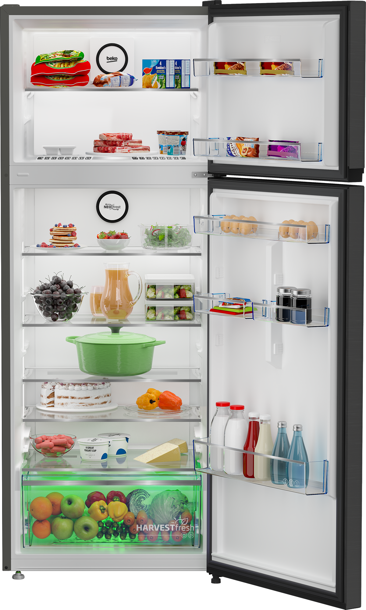 ثلاجة بيكو 455 لتر (صافي 406) إينوكس دارك انفرتر هارفست فريش – موديل RDNG551M20XBR
