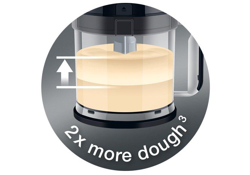 محضر طعام بحجم كبير تقطيع، شرائح (رفيعة وسميكة)، بشر (ناعم خشن) وتعجن حتى العجين الثقيل.