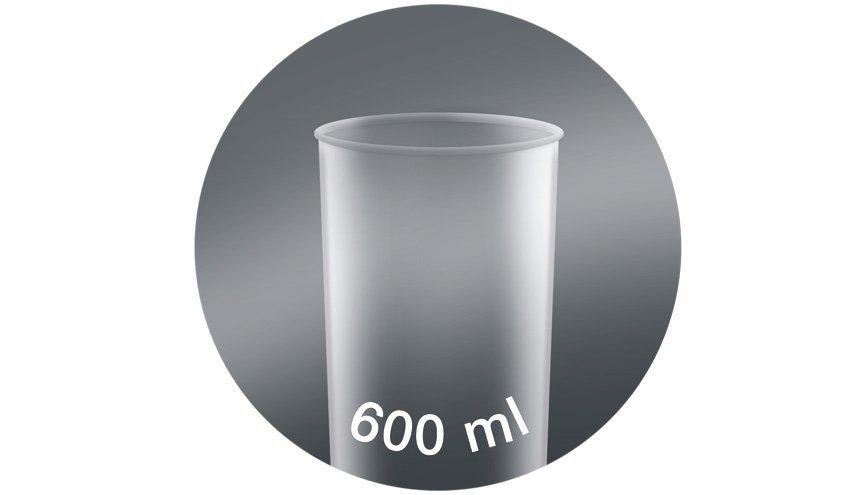 وعاء بلاستيكي سعة 600 مل، خالٍ من مادة BPA، بقياسات مل وأوقية سائلة.
