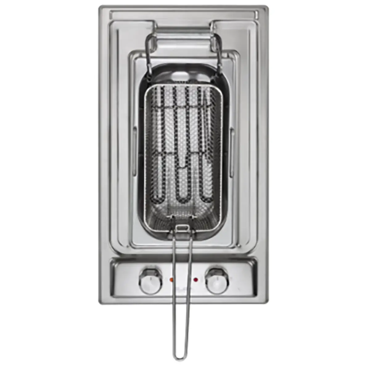 سلة ستانلس ستيل: سلة قلي عميقة وقوية بمقبض عازل للحرارة، مع خطاف لتعليق السلة وتصفية الزيت الزائد قبل التقديم.