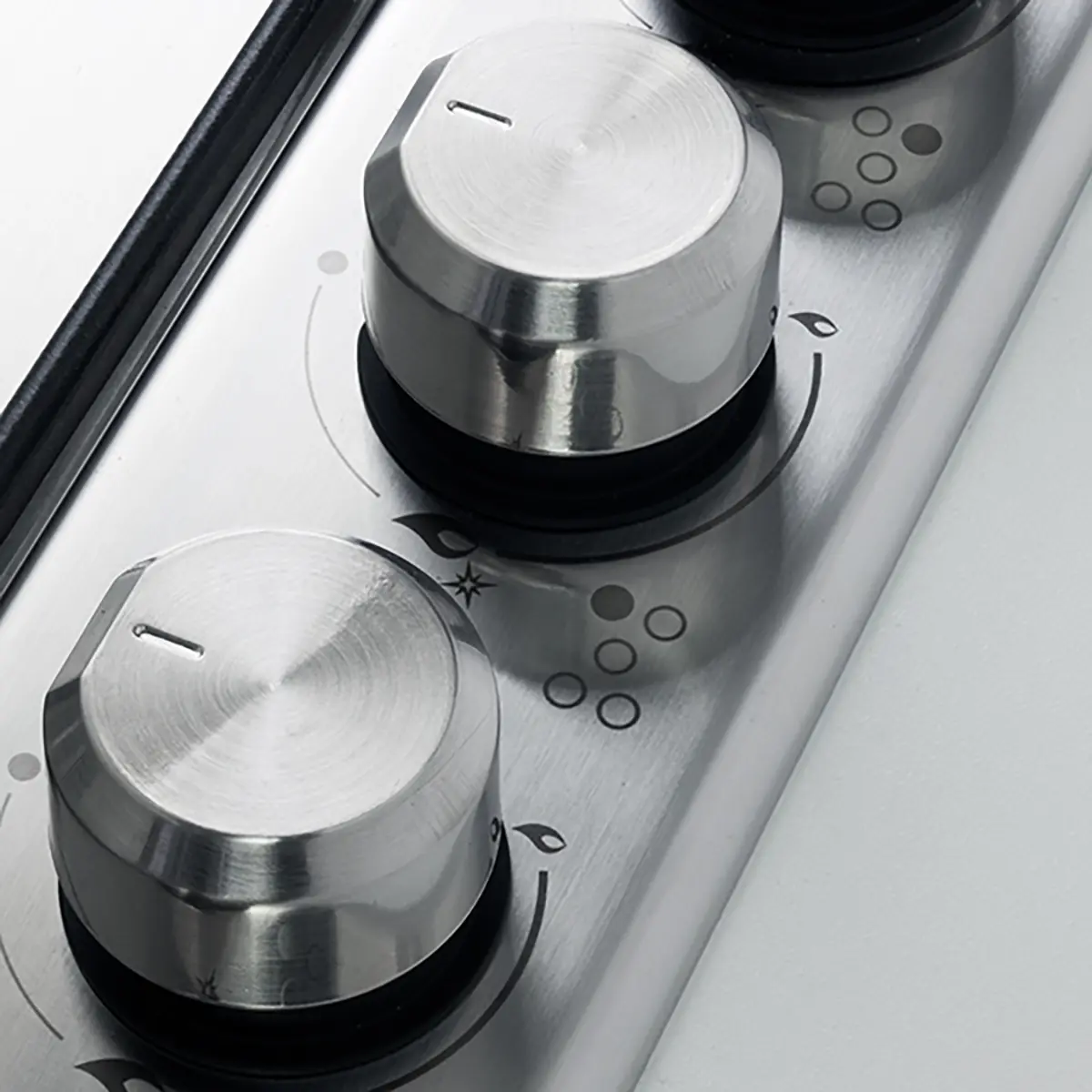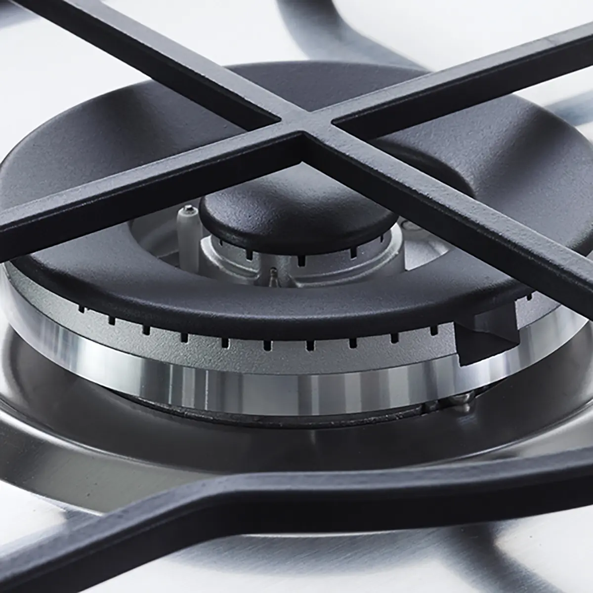 5 شعلات قوية: يتضمن شعلة مركزية ثلاثية (Triple Ring) عالية الكفاءة (حتى 4.0 كيلو واط)، مثالية للقلي السريع والطهي في أواني الووك الكبيرة.