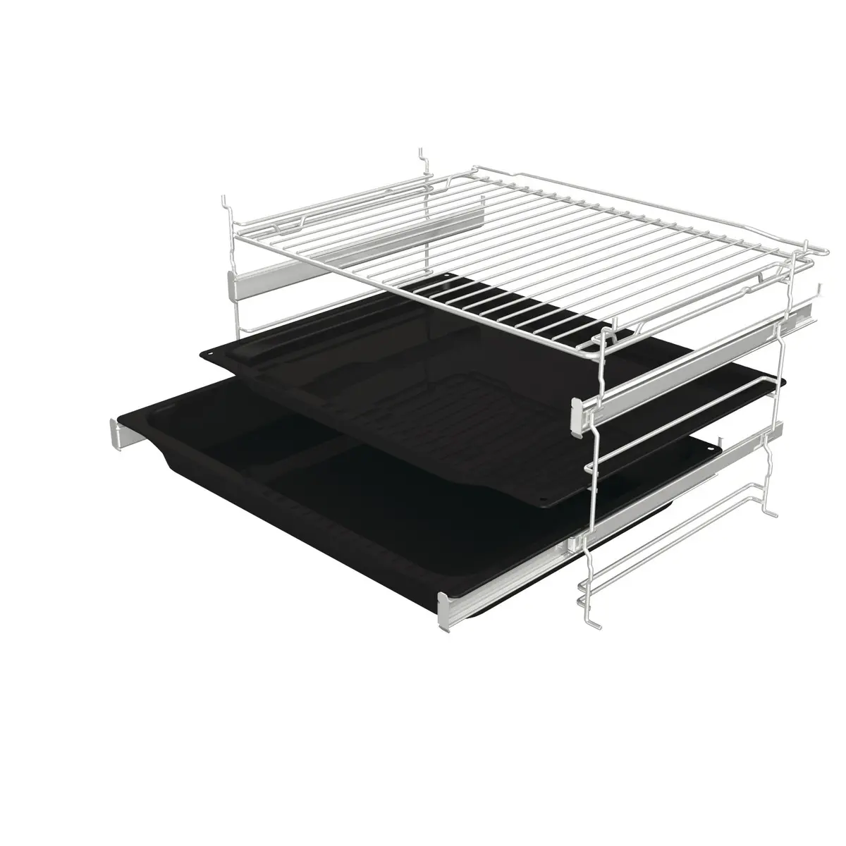 مجرى تلسكوبي مزدوج: يتميز هذا الموديل بوجود رفوف تلسكوبية على مستويين (2 Levels)، مما يوفر راحة وأماناً مضاعفاً عند سحب الصواني الثقيلة.
